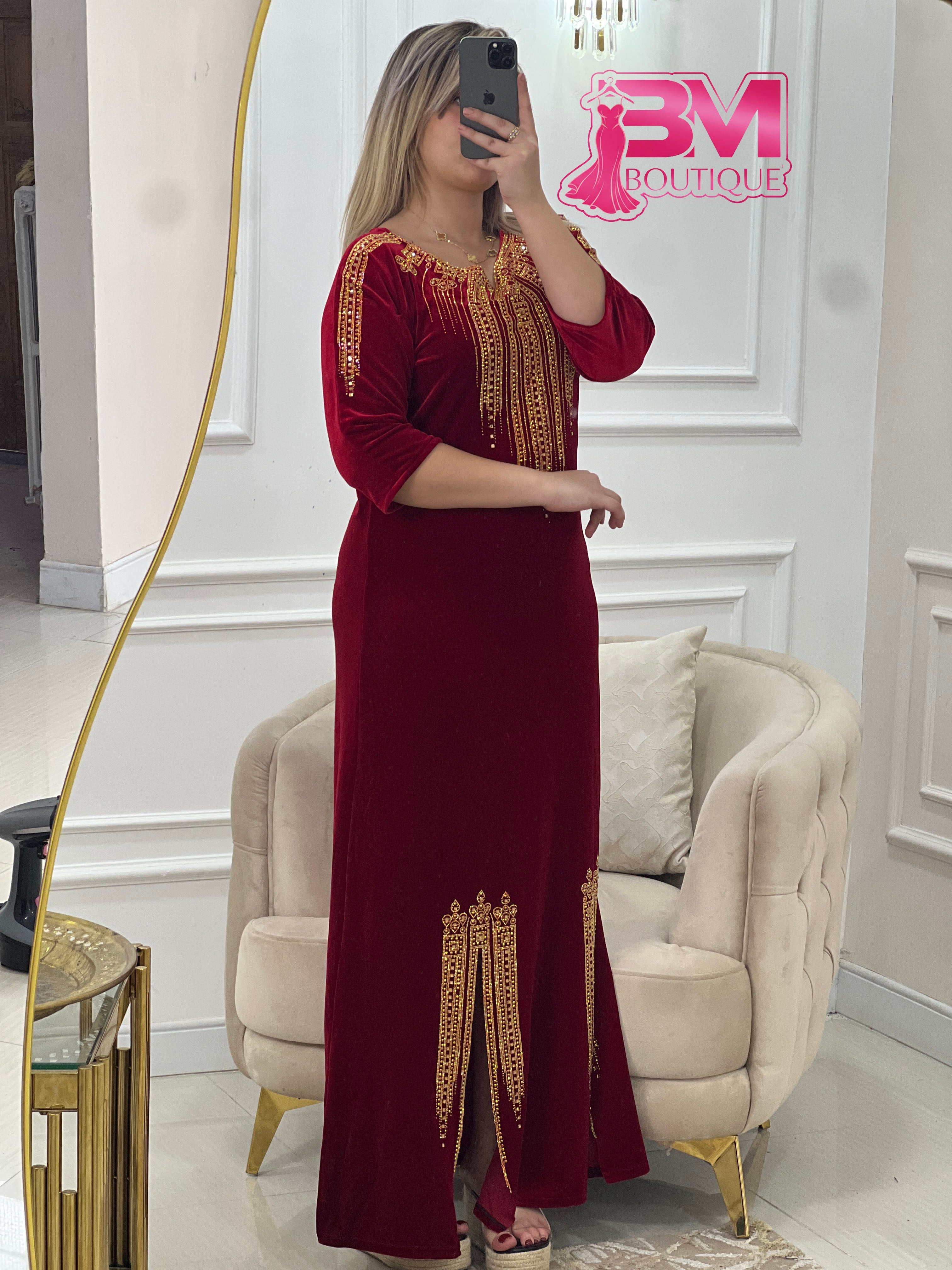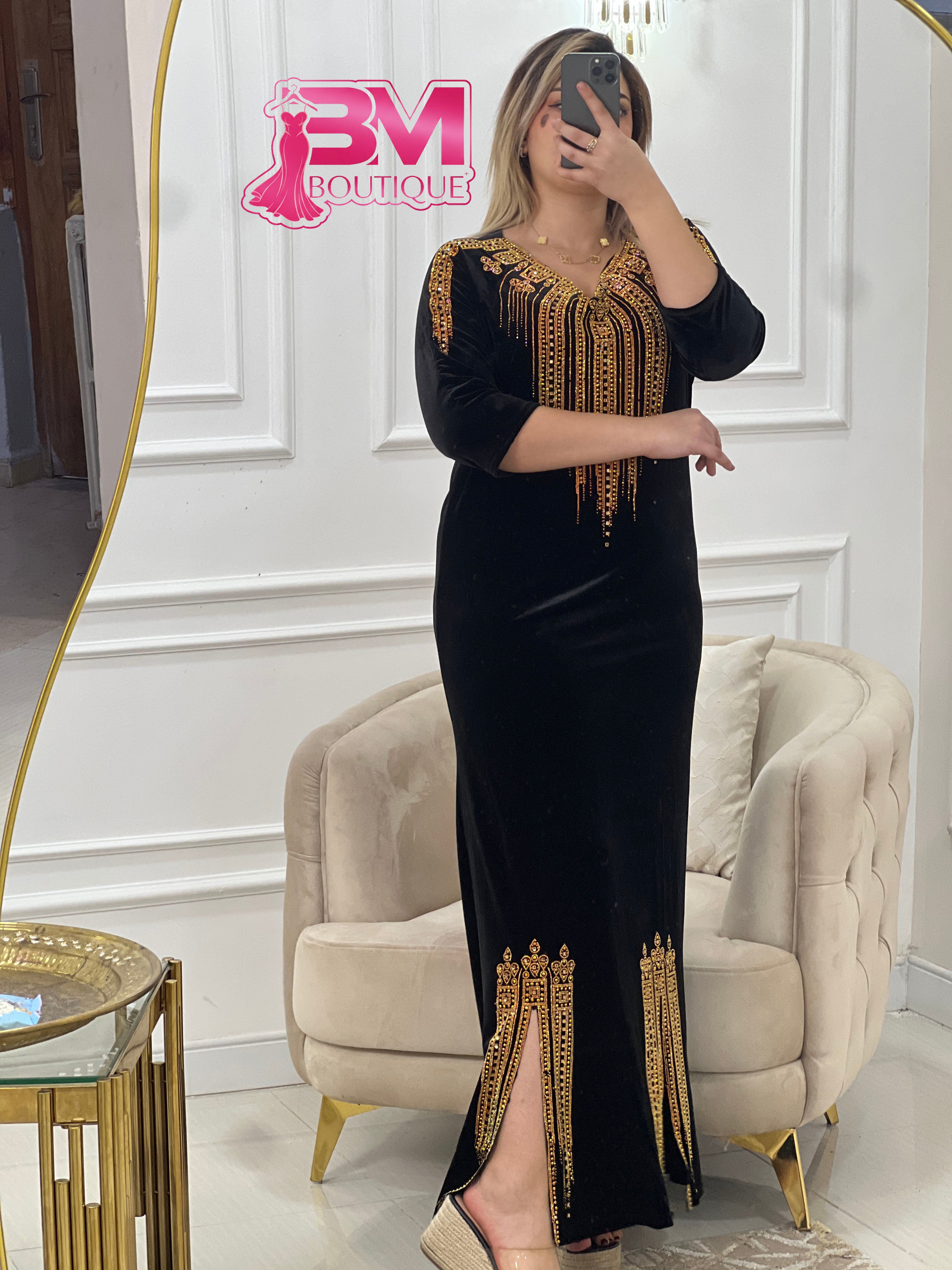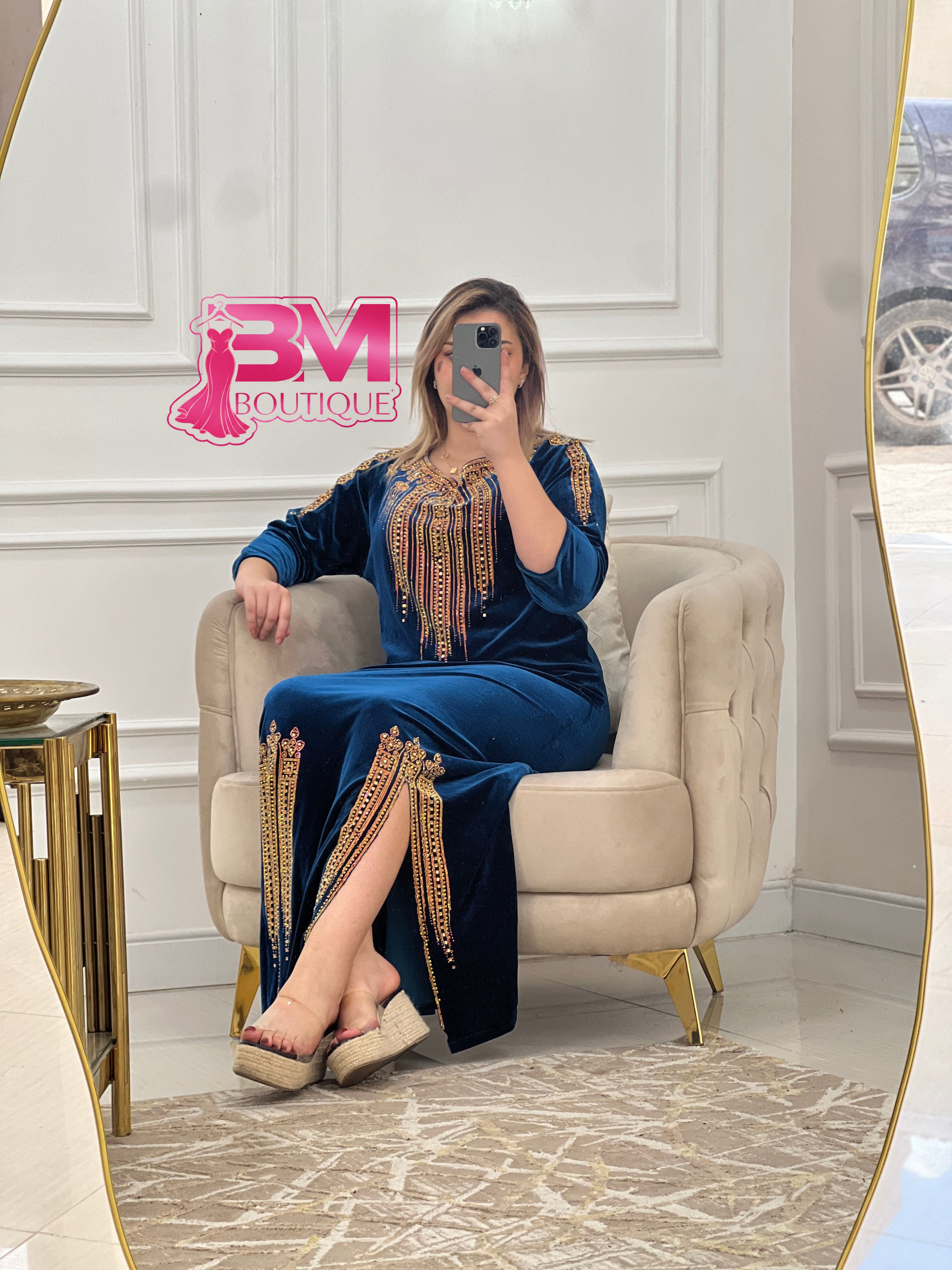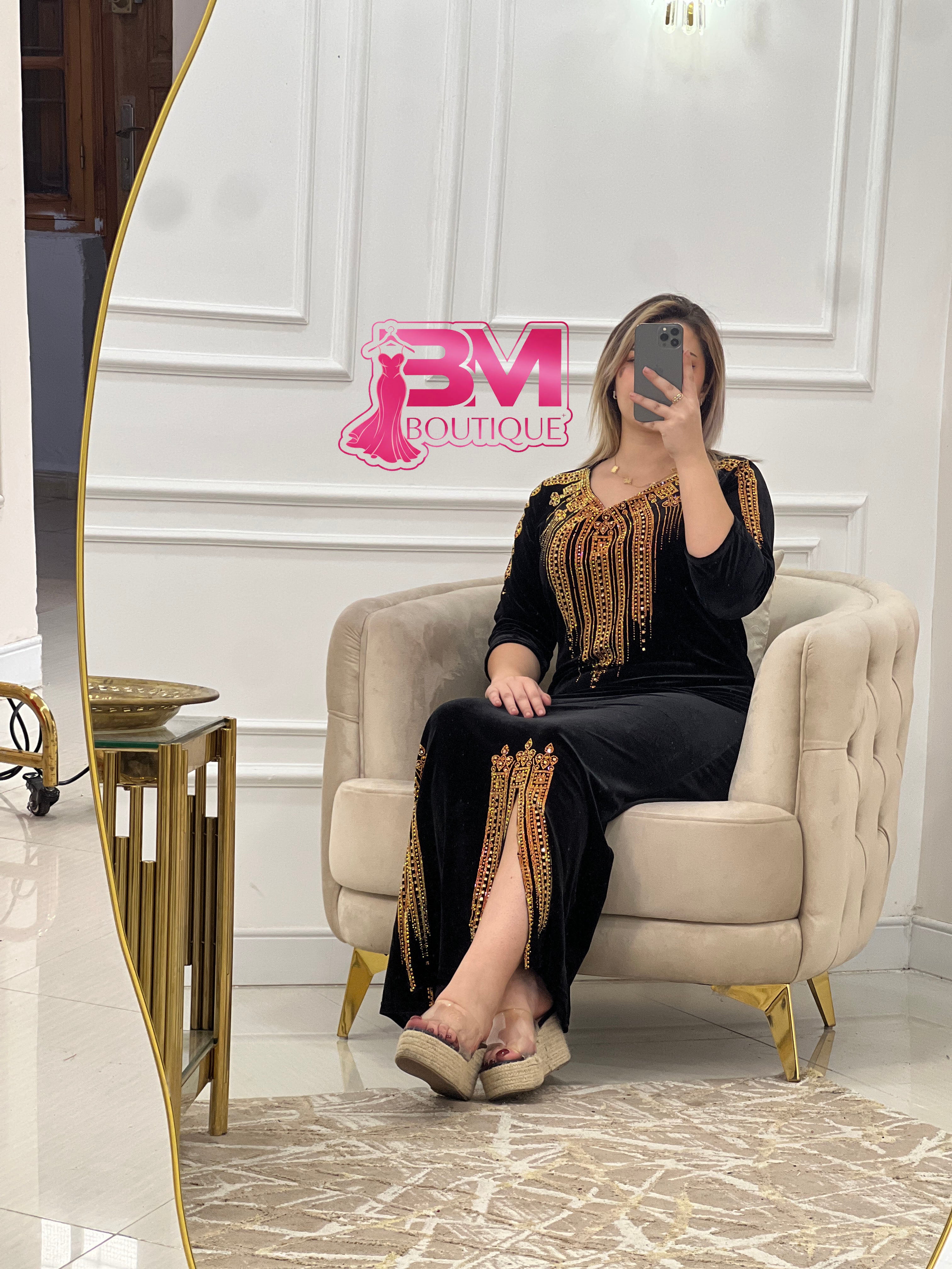 تألّقي بإطلالة تخطف الأنظار مع فستان سُلطانة من BMBoutique، حيث تلتقي الفخامة بالتفاصيل الراقية في تصميم يجمع بين القطيفة الفاخرة و التطريز الذهبي البديع 👑✨